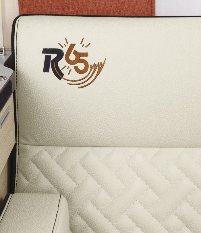 Die Jubiläumsmodelle verfügen über eine exklusive Polsterung mit gesticktem Logo 65 Jahre (auf den Polsterstoffen TEP NOUMEA und PALMA).