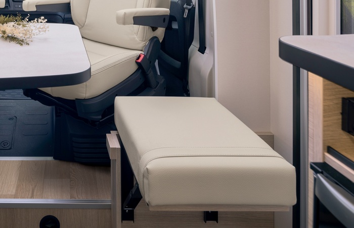 Wandeln Sie Ihren Wohnbereich im Handumdrehen in einen weiteren Schlafplatz um, damit bis zu drei Personen in Ihrem Reisemobil übernachten können.