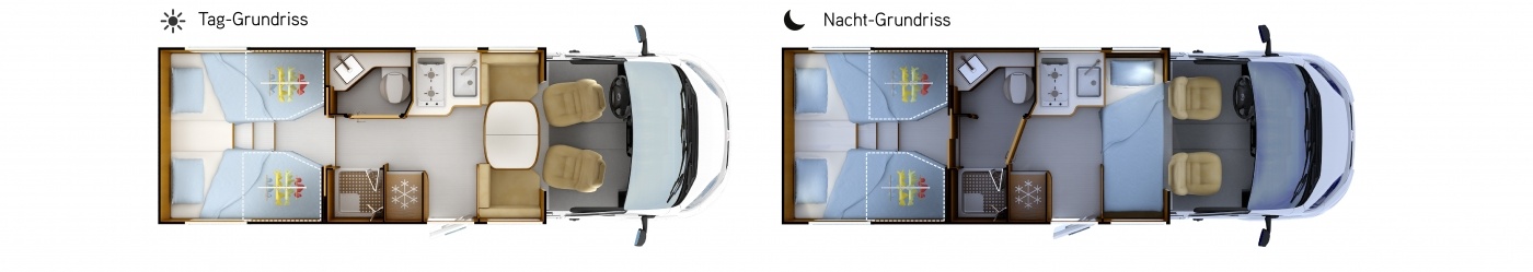 Der einzige kompakte Teilintegrierte mit Einzelbetten, Face-to-Face Sitzgruppe und separater Dusche